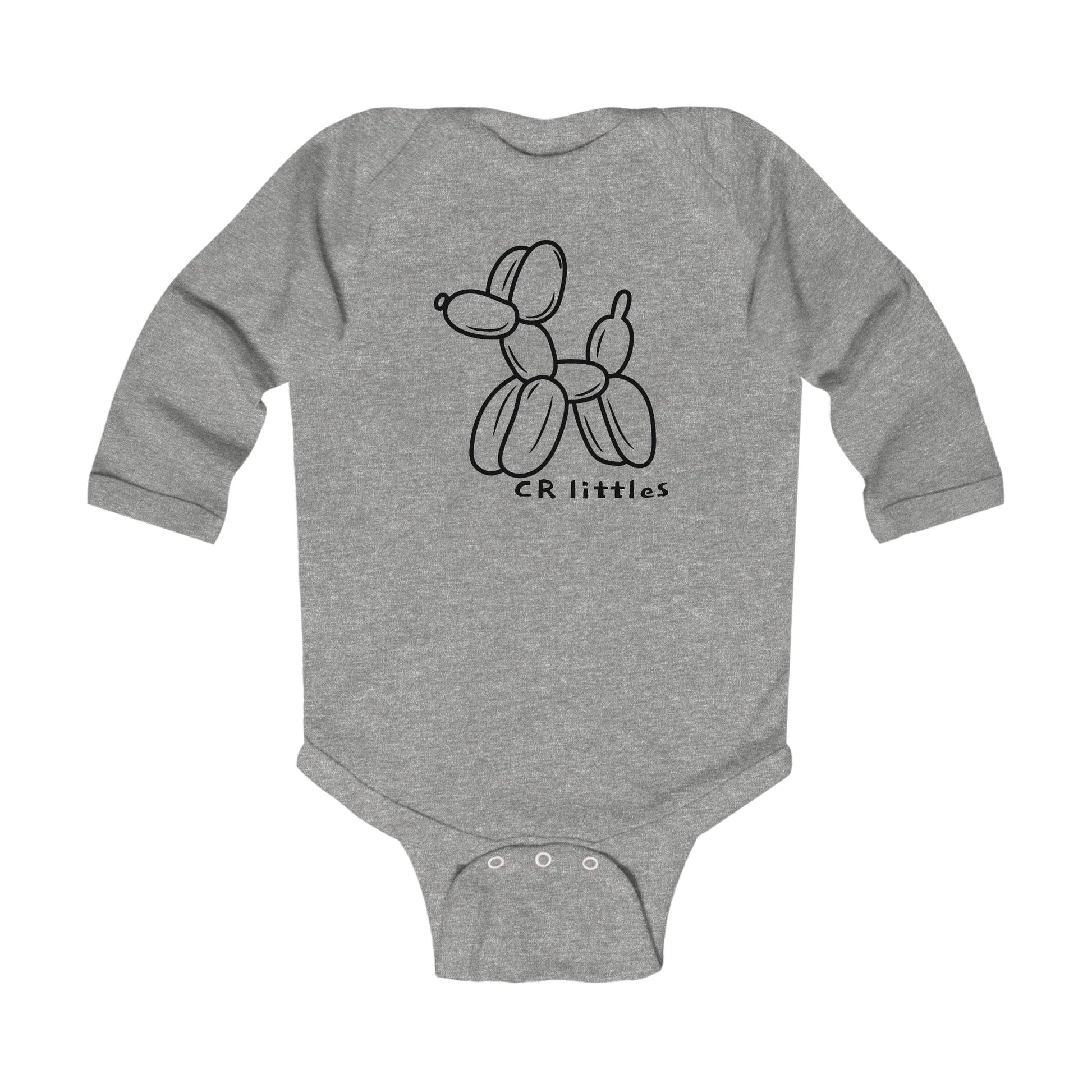Any product designed for babies needs to hold up. This Balloon Animal graphic on our long sleeve bodysuit does just that. Solid colors are 100% cotton. Other colors will include polyester. Either way, the fabric will be smooth and soft against your young one's skin. There are plastic snaps at the cross closure for easy changing. All bindings have ribbed knitting for durability and improved range of motion.