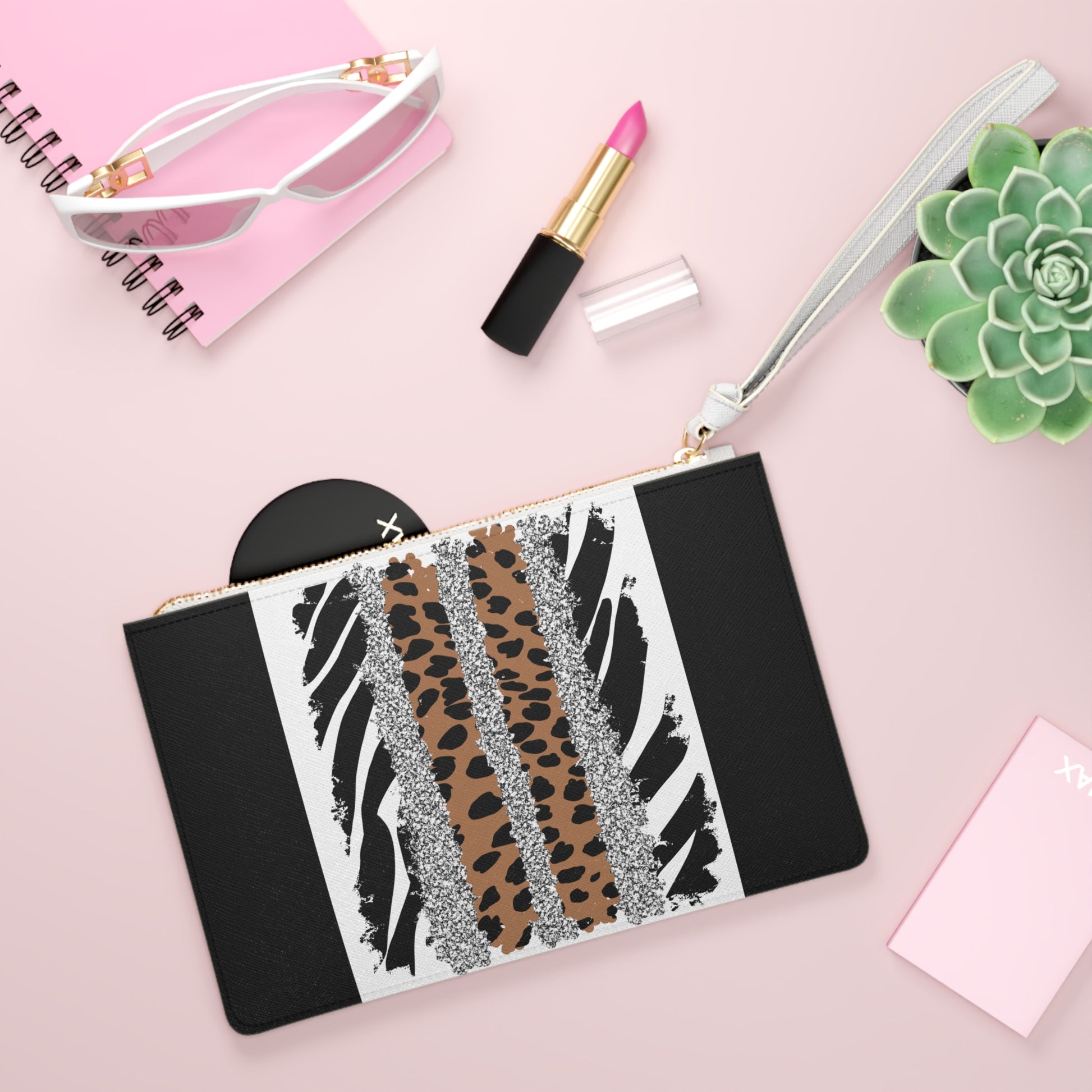 Designed with a loop handle to quickly free your hands, this custom clutch bag is made for anyone who wants to look cute when on the go. A clutch bag that can hold everyday essentials such as a phone, wallet, and keys. It features a zip fastening and a fully lined internal pocket. It is made of vegan leather in the Saffiano pattern finish that was invented by Prada.